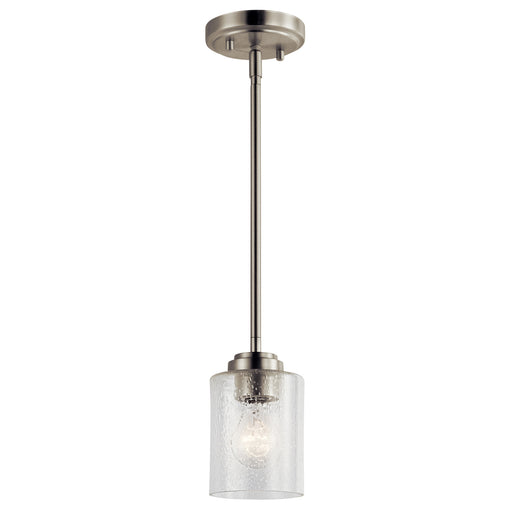 View full detailsDescription 1 light pendant with Brushed Nickel finish and clear water glass. Lamping Bulb Type: E26 Bulb Base: E26 Medium Bulb Quantity: 1 Watt...