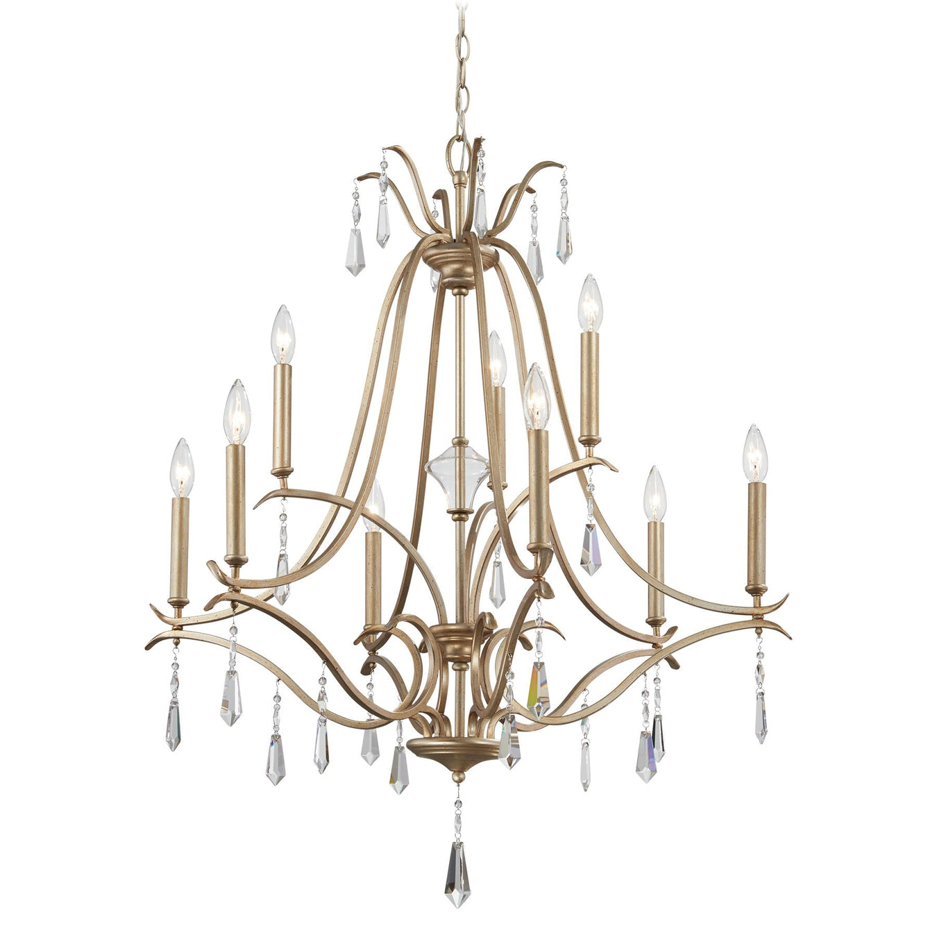View full detailsDescription Add glamour to your home with this enchanting shaded chandelier.Scrolling arms adorned in a brushed nickel finish are paired with glit...