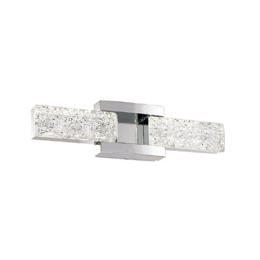 View full detailsDescription Two-Light LED modern wall fixture in Polished Chrome with geometric frosted glass shades and a replaceable LED module. This modern fix...