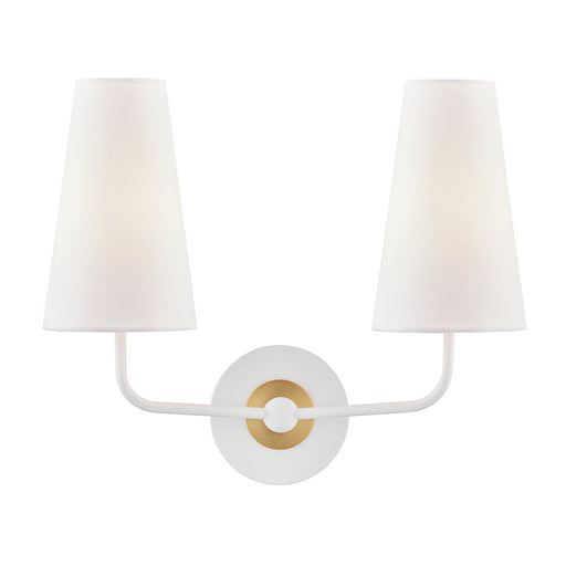 View full detailsDescription The Ingrid 2-Light Wall Sconce in Satin Brass with Cone fabric shade is perfect for contemporary and modern spaces. It can be installe...