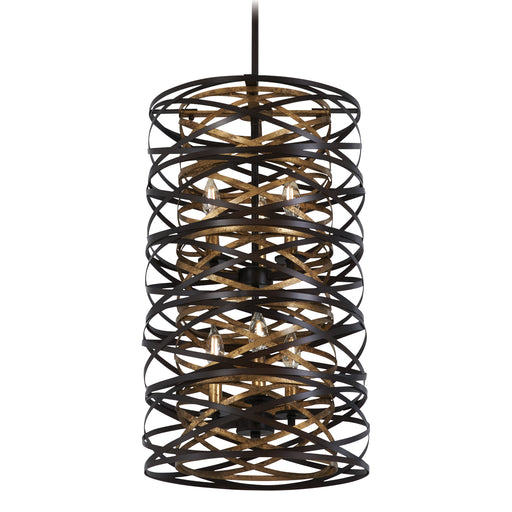 Vortic Flow Pendant in Dark Bronze with Mosaic Gold Interior