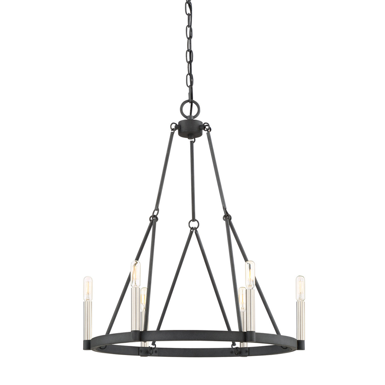 View full detailsDescription Illuminate luxury with the Cohen Medium Chandelier. The elegant arms form curved, open details topped with bobeches and short candle s...