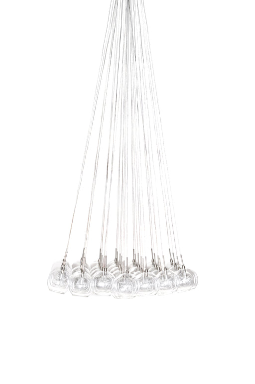 View full detailsDescription Our ever popular collection has grown up. Large scale fonts of clear bubble glass are suspended from Polished Chrome supports with no ...