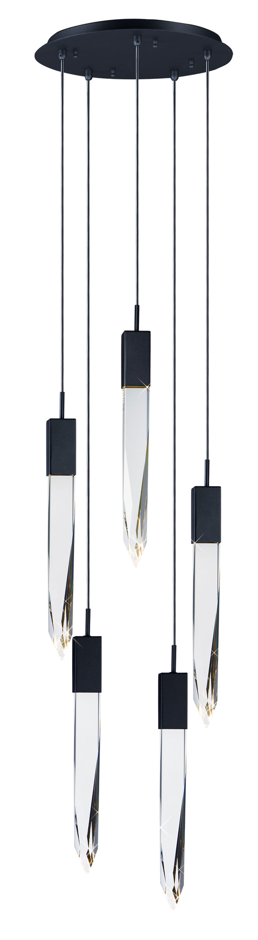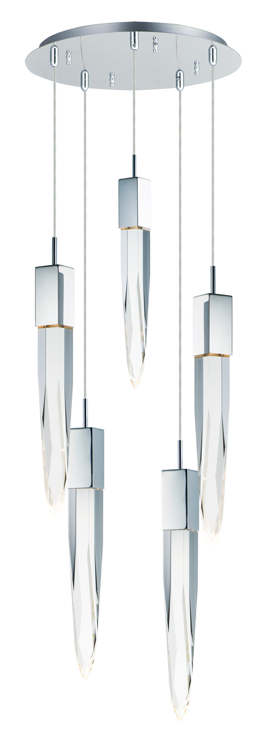 View full detailsDescription Stalactites of Clear Beveled crystal suspend from your choice of Polished Chrome or Black supports, can be hung at various heights to ...