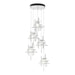 Thick, seeded clear glass shades are nestled within each of the Tura 5-Light Pendant's modern, open, cage-like individual pendants. Perpendicular, intersecting pieces of hammered annealed aluminum, are painstakingly handmade with a trip hammer and dies by Vermont artisans. Easily customizable in length, the Tura is so versatile that you can feature it as a semi-flush or a longer pendant with cascading light with an easy cable adjustment.