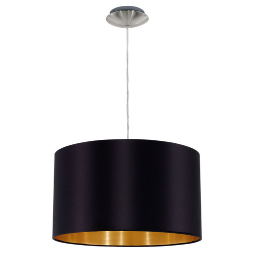 View full detailsDescription The Rafaelino Single Light Pendant by Eglo features a dome-shaped metal shade with a Structured Black Exterior and Gold Leaf interior ...