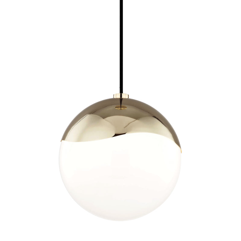Description The streamlined Dolby 1-Light Pendant evokes retro chic style with Soft White glass encircled by the metal globe shade. The textured B...