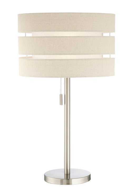 View full detailsLamping Bulb Type: E26 Bulb Base: E26 Bulb Quantity: 2 Wattage: 60W x 2 Features Finish/Color: Brushed Steel Wood Glass/Shade: Fabric Genera...