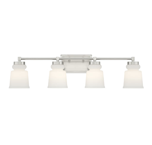 View full detailsDescription Simply stylish and cleanly classic, this 4-light bath vanity bar showcases vintage-inspired shades of milk glass and a brushed nickel ...