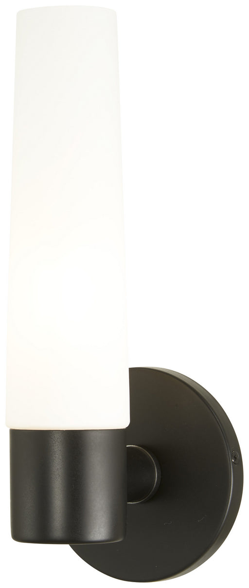 View full detailsDescription The bold look of matte black finish steel stands out in the design of this one-light wall sconce, an ideal selection to enhance a mode...