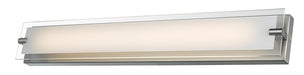 Blaze vanity wall fixture is designed to be ultra slim, projecting less than 2.5 inches from the surface, and provides a sleek geometric look in a bathroom. The frosted diffuser with a clear glass edge and high-output AC LED engine provides a surreal effect. Mountable horizontally or vertically and dimmable with regular dimmers.