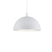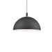 Single-lamp pendant with aluminum dome shade showcasing powder-coated or plated finishes with metal details and a matte white interior. Exterior shade colors are black, brushed nickel, or white. Suspended by cloth cable. Available in three sizes.
