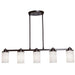 Parkdale 5 lite down island features its clean and simple design complimented with amber glassware in rubbed oiled bronze finish (2 x 18" & 2 x 12" & 1 x 6" rods included with hang straights)