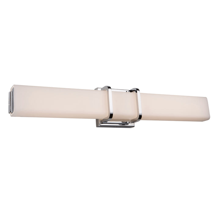 The "Omni" collection which is part of the "True Performance Series", has state of the art LED components which delivers superior quality of light for the bathroom area. This model comes with a square edged cylinder etched opal glass on Chrome frame. (These LEDs are dimmable, CRI 90, 3000K and energy efficient). (also ADA Compliant)