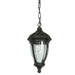 Anapolis chain pendant, featuring die cast aluminum, rust resistant copper screws, environmentally friendly durable oil bronze finish and optic clear glassware