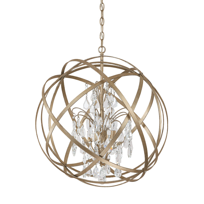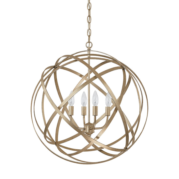 Designed to support four lamps and plenty of style, the Axis medium pendant steals the show. Rendered in two tones - a Matte Black and an Aged Brass finish - this striking orb pendant is easily coordinated with many decor schemes.