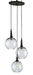 Voluptuous glass spheres dangle at differing heights from the canopy of the Beckett Trio Pendant, its wrought iron elements treated to an Emery rust finish. The mid-century modern vibe of this light fixture is heightened by the glass globes that measure 9 inches in diameter. The Beckett has an adjustable hanging length and there is also a one-globe pendant in the Becket family of fixtures.