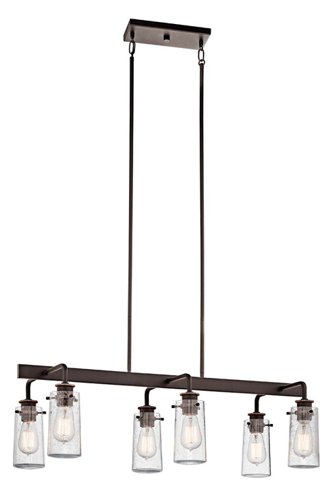There's So Much To Love About The Reclaimed Style Of This 6 Light Linear Chandelier In Classic Pewter From The Braelyn(Tm) Collection. The Vintage Industrial Design Is Punctuated With Clear Seeded Glass Shades, Reminiscent Of Glass Jars That Were A Staple Of 19Th Century American Life. The Carbon Filament Replica Light Bulbs Enhance This Style, Making The Fixtures The Perfect Addition To Any Spaces.