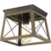 Create a cozy home with the Briarwood Collection 1-Light rich faux painted oak farmhouse flush mount ceiling light. A light source exudes a comforting country glow as it peeks through the X-brace design reminiscent of country barn doors and rustic farmhouse gates. A faux-wood frame coated in a rustic oak finish accented by an antique bronze plate on top of the structure infuses the ceiling light with charming country character.