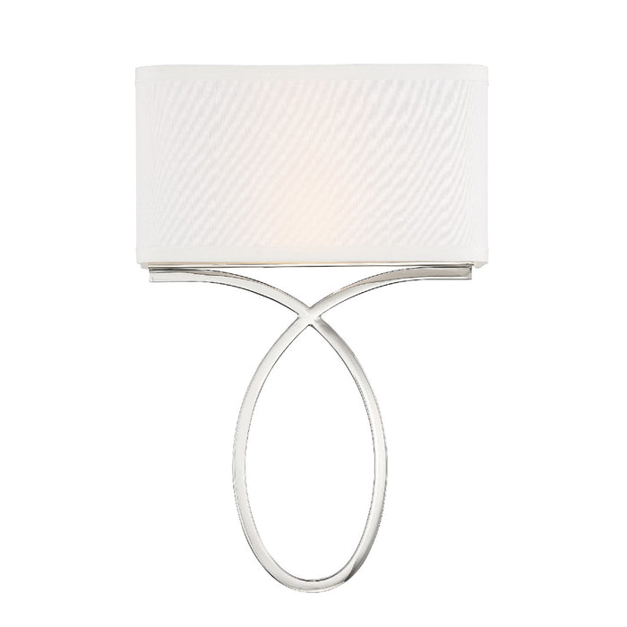 The minimalist two-light wall sconce features an oval metal accent below the white silk rectangular shade. Its simple form can be used for a contemporary or transitional home while versatile enough to be incorporated into any design.