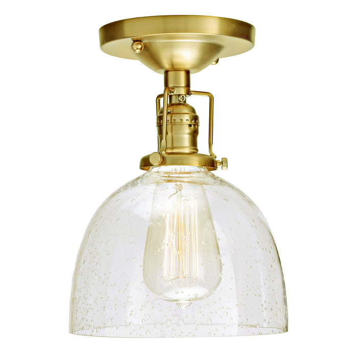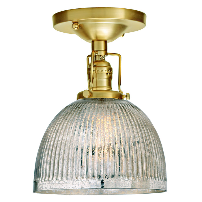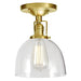 The Central Park 1-Light Ceiling Mount with 7" Glass Shade in Satin Brass is perfect for industrial spaces. It can be installed in Dry locations and comes with Medium-based bulb(s).