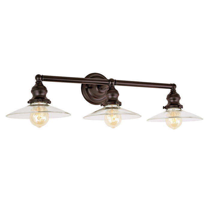 The Central Park 3-Light Angelique Bathroom Wall Sconce in Oil Rubbed Bronze with Clear Glass is perfect for period/vintage and traditional spaces. It can be installed in Damp locations and comes with Medium-based bulb(s).