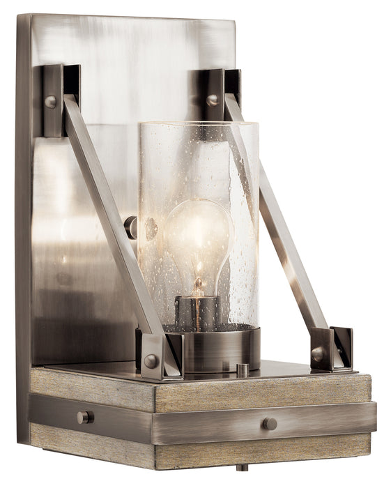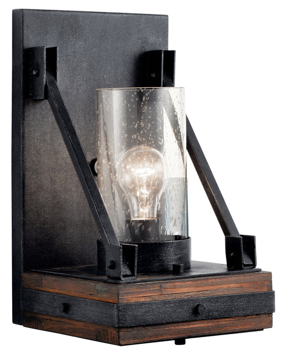 You'll Love The Flea Market Find-Feel That This 1 Light Wall Sconce From The Colerne Collection Brings To Your Space. Natural Wood With An Auburn Stain Creates The Look Of A Reclaimed Wooden Box Up Cycled Into Something That's At Home In Both A Rustic Lodge Or A New York Loft. The Vintage Industrial Design Comes To Life With Distressed Black Metal Accents.