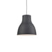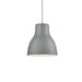 Single-lamp pendant with tapered aluminum shade showcasing powder-coated finishes. Exterior shade colors are either black, gray or white, with matte white interior. Suspended by cloth cable . Available in three sizes.
