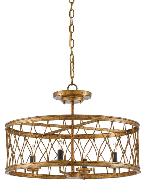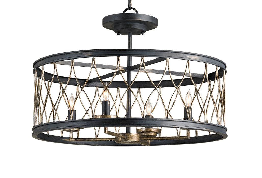 Crisscrossing wires twist and turn in a svelte diamond pattern to place the shade of the Crisscross Pendant Semi-Flush fixture at the intersection of vintage style and modern taste. The gold leaf finish accentuates the skills our artisans have achieved with hand-finishing. Switch the lights on and watch it reflect elegant patterns on surrounding surfaces that will enchant whomever walks into the room. We also offer this four-light pendant in a darker finish for a more masculine feel.