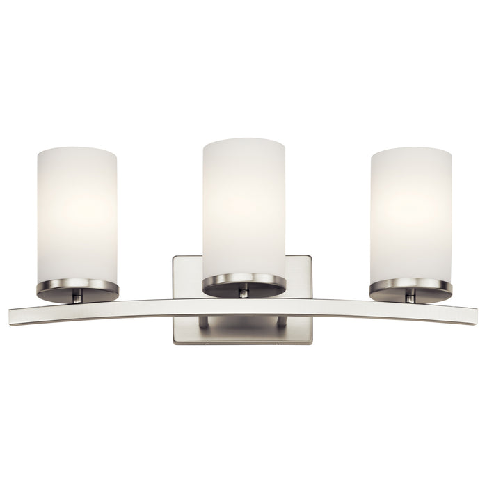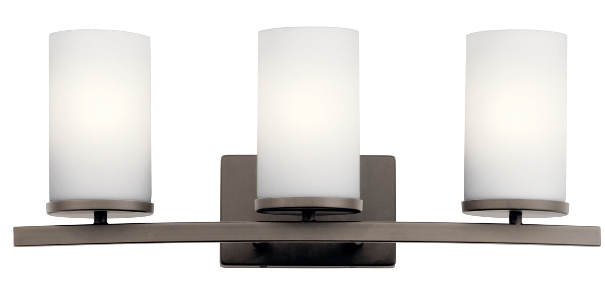 Streamlined And Simple, This Crosby 3 Light Bath Light In Chrome Delivers Clean Lines For A Contemporary Style. The Satin Etched Cased Opal Shades Enhance This Minimalistic Design.