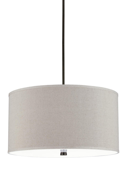 The Dayna Shade Pendants four light indoor pendant in bronze is the perfect way to achieve your desired fashion or functional needs in your home. The sleek, fabric shades and smooth acrylic diffusers of the Dayna shade pendant collection by combine to create a warm glow. Finished-off with decorative metal finials to secure the White Acrylic diffusers in place, these fixtures convey a tailored look while creating both ambient and task lighting. The assortment includes two-light, three-light and four-light pendants and a two-light flush /semi-flush convertible all with classic drum shades, as well as a large four-light pendant with an angular trapezoidal shade, and all are offered in either Brushed Nickel or Burnt Sienna finishes with either Cream or Beige Faux Linen fabric shades. Both incandescent lamping and ENERGY STAR-qualified LED lamping are available, all fixtures are California Title 24 compliant.