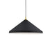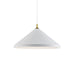 Single lamp pendant with conical aluminum shade with fine powder-coated or plated finishes with contrasting finial. Exterior shade colors are black or white with gold detail or brushed nickel with black detail. Suspended by cloth cable. Available in 2 sizes.
