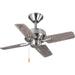 Enhance your home with the perfect mix of form and function with the 32 in four-blade Drift fan. Ideal for smaller spaces, such as closets, mudrooms and laundry rooms, Drift features a powerful motor and a steep pitch to circulate a lot of air within a smaller space. Drift offers a dual mount system and a three-speed pull chain fan switch, as well as an on/off pull chain switch to operate the light. Brushed Nickel finish.