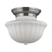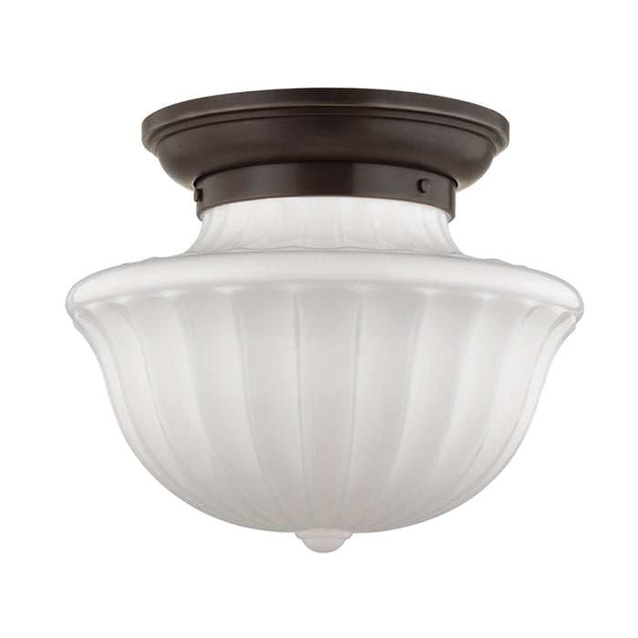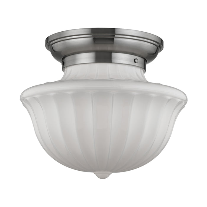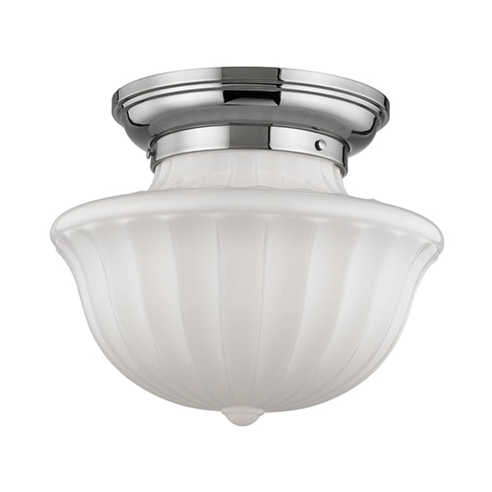 In the early 1920s, exposed-bulb light fixtures were jettisoned in favor of opaque glass globes that disguised the light source.� These pieces found popularity predominantly in schoolhouses, giving this style its name. Here, we start with a classic schoolhouse glass shape and take it up a notch with lovely fluting that beautifully diffuses the light. The uncomplicated metal work and the iconic glass shape call to mind a time when the world seemed a simpler place.