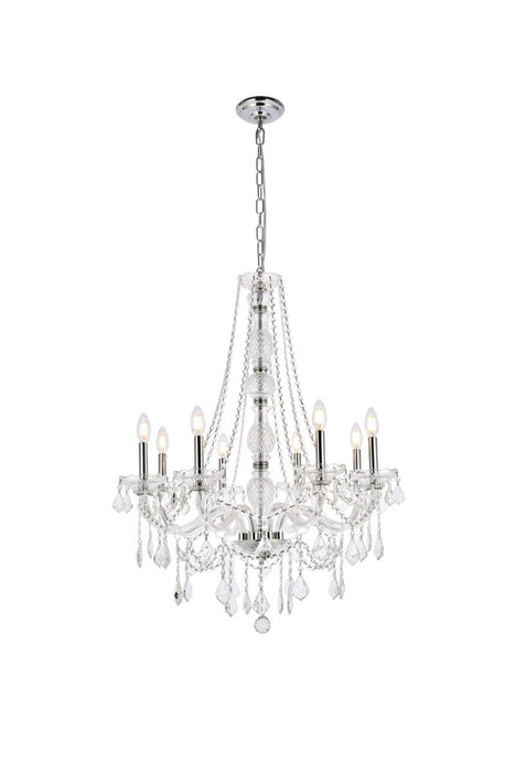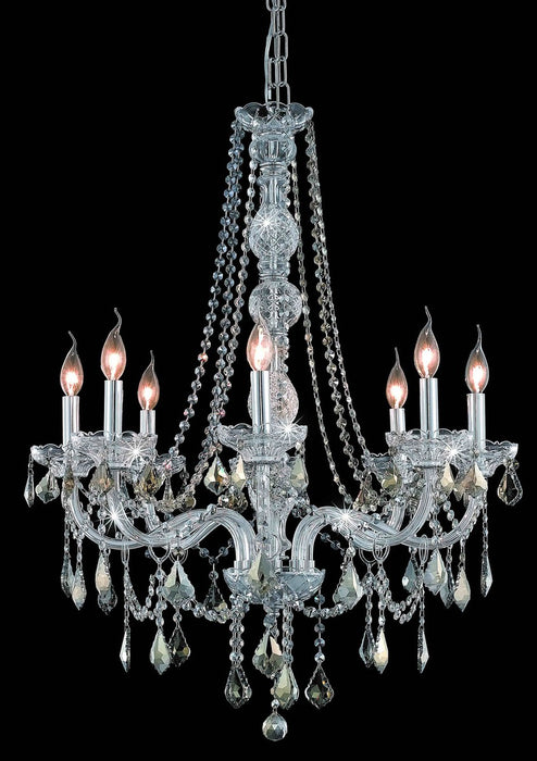 Add an updated version of Old World panache to your d�cor with an elegant chandelier from the Verona collection. These distinctive fixtures are highlighted by tall, intricate, cut-crystal center columns draped in shimmering cascades of crystal beads. Eight arms capped with candelabra lights (not included) on crystal bob�ches complete the visual treat, which also includes festoons of diamond-like crystals, glass rings, and pendeloques. Available with a choice of finishes and types of crystal.