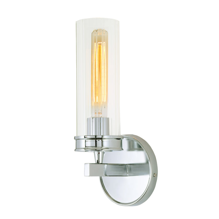 The Eloise 1-Light Wall Sconce in Satin Brass with Ribbed Glass is perfect for transitional spaces. It can be installed in Damp locations and comes with Medium-based bulb(s).