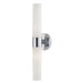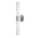The Vesper two light wall sconce has frosted glass tube with cast metal frame with incandescent lighting.