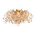 The Campobasso linear flushmount features intricate gold metal wire frame adorned by delicately hand strung glass wafers.