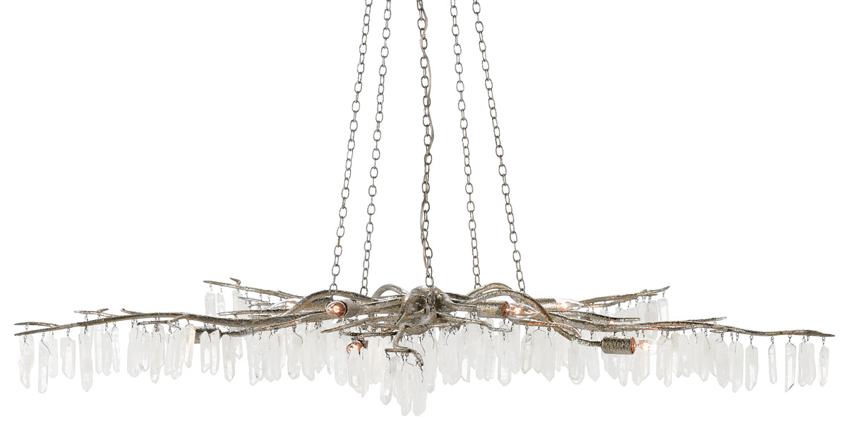 The gold version of the Forest Light Chandelier is a truly exceptional work of art fanning out from its center to reach 60 inches in diameter. Place this ten-light object d�art in a room and it will become a stunning sculptural piece dripping with quartz crystals. The washed Lucerne gold finish is a perfect complement to the quartz on this piece that echoes nature with its tree-like branches. We also offer the Forest Light, in our Aviva Stanoff Collection, in a sconce and in several chandelier finishes.