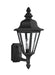 The Brentwood one light outdoor wall fixture in black creates a warm and inviting welcome presentation for your home's exterior. The traditional design accents and pleasant proportions of the Brentwood outdoor lighting collection from make it a versatile selection for any home. Offered in either a Black Powder coat or White Powder coat finish, and either Clear or White Glass. The assortment offered in both finishes includes a small one-light outdoor wall lantern, a medium one-up light outdoor wall lantern, a medium one-downlight outdoor wall lantern, a large one-light wall lantern, a one-light outdoor pendant and a one-light outdoor post lantern. In the Black Powder coat finish only, a two-light outdoor ceiling flush mount is also available. Most of these fixtures easily convert to LED by purchasing LED replacement lamps sold separately.