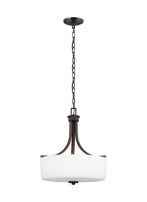 The Canfield three light indoor pendant in bronze is the perfect way to achieve your desired fashion or functional needs in your home. Behind every seemingly simple design lies unerring attention to restraint and obsessive attention to the tiniest details. The Canfield collection by draws on the modernist traditions of "less is more". Essential functional elements dictate the aesthetics, and clean lines prevail. Layers of intricately finished hand-brushed steel progress vertically to the soft glow of light diffused through finely etched glass diffusors. Canfield offers a "whole home" lighting solution, offering lighting in every imaginable category from the auspicious 15 light 3-tier chandelier, to the concise mini-pendant and one-light sconces. The collection is available in hand brushed Burnt Sienna for a warm, tactile, almost Craftsman design style, or a brushed nickel to emphasize the more architectural elements of your interior.