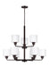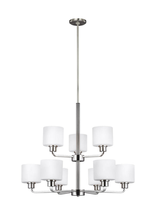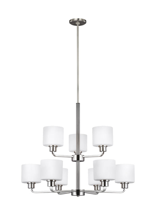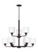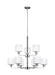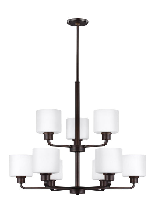 The Canfield nine light multi-tier chandelier in bronze is the perfect way to achieve your desired fashion or functional needs in your home. Behind every seemingly simple design lies unerring attention to restraint and obsessive attention to the tiniest details. The Canfield collection by draws on the modernist traditions of "less is more". Essential functional elements dictate the aesthetics, and clean lines prevail. Layers of intricately finished hand-brushed steel progress vertically to the soft glow of light diffused through finely etched glass diffusors. Canfield offers a "whole home" lighting solution, offering lighting in every imaginable category from the auspicious 15 light 3-tier chandelier, to the concise mini-pendant and one-light sconces. The collection is available in hand brushed Burnt Sienna for a warm, tactile, almost Craftsman design style, or a brushed nickel to emphasize the more architectural elements of your interior.