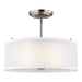 The Elmwood Park two light semi flush fixture in brushed nickel provides abundant light to your home, while adding style and interest. Elmwood Park by has clear glass tube shades with an inner white glass element that softens the light and helps cast an even glow. A cylinder of etched glass is centered within a larger cylinder of clear glass which encircles each light bulb to create this stunning visual effect. The full assortment includes three-, five-and nine-light chandeliers, a four-light linear, one-light mini pendant, a three-light pendant, a two-light semi flush which is convertible into a pendant, and one-, two-, three- and four-light bath fixtures. All fixtures offered in either a Brushed Nickel or Brushed Oil Rubbed Bronze. Incandescent and ENERGY STAR-qualified LED lamping are available, all fixtures are California Title 24 compliant.