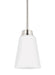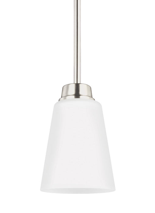The Kerrville one light mini pendant in chrome enhances the beauty of your home with ample light and style to match today's trends. With a simple, airy appearance, the Kerrville lighting collection by embraces its modern design roots while enhancing virtually any homes decor. Tubular steel arms extend outward and curve to present beautiful tapered, Satin Etched glass shades. The collection has a Brushed Nickel, Burnt Sienna or Chrome finish and offers three-, five- and nine-light chandeliers, a one-light mini pendant, one- and three-light pendants, a two-light semi-flush mount which can convert to a pendant, and one-, two-, three- and four-light bath fixtures. Incandescent and ENERGY STAR-qualified LED lamping are available, all fixtures are California Title 24 compliant.