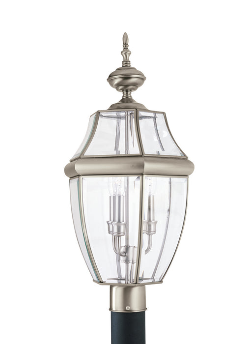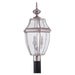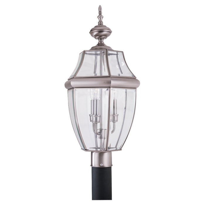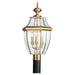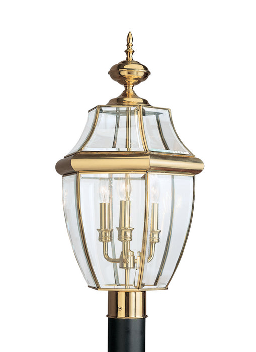 The Lancaster three light outdoor post top in polished brass enhances the beauty of your property, makes your home safer and more secure, and increases the number of pleasurable hours you spend outdoors. Light has a way of sparkling against glass to create a warm and inviting welcome, and the Lancaster outdoor collection by is a classic example of such traditional design. Clear Curved Beveled glass is paired with one of four beautiful finish options including Polished Brass, Black, Antique Bronze and Antique Brushed Nickel. The assortment includes small, medium and large one-light outdoor wall lanterns, two-light outdoor wall lantern, three-light outdoor wall lantern, two-light and three-light outdoor post lanterns and a three-light outdoor pendant. Some of the fixtures can easily convert to LED by purchasing LED replacement lamps sold separately.
