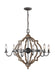 The Socorro six light single tier chandelier in stardust provides abundant light to your home, while adding style and interest. The transitional Socorro lighting series by features a classic, barbed Quatrefoil profile - wholly updated by combining a distressed Cerused Oak finish on the decorative silhouette with the rich Stardust finish on the metal bobeches and decorative strapping to create undeniable rustic charm. While still offered in its original finish Stardust, the Socorro has been beautifully updated with our popular Washed Pine and Chrome finish to offer a modern take on this timeless industrial beauty. The collection includes a four-light mini-chandelier, medium and large six-light chandeliers, and four-light and six-light hall / foyer pendants. Incandescent candelabra base lamping.