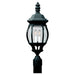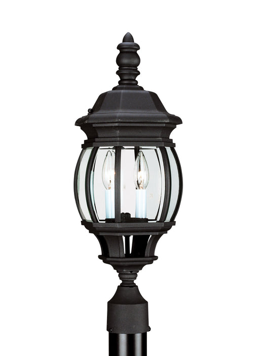 The Wynfield two light outdoor post top in black enhances the beauty of your property, makes your home safer and more secure, and increases the number of pleasurable hours you spend outdoors. The Wynfield collection by complements classical home designs with its soft curves and colonial accents. A Black Powder coat finish over a durable cast aluminum body adds dependable quality to an enduring style. Either Frosted glass or Clear Beveled glass give the fixtures distinct appeal.
