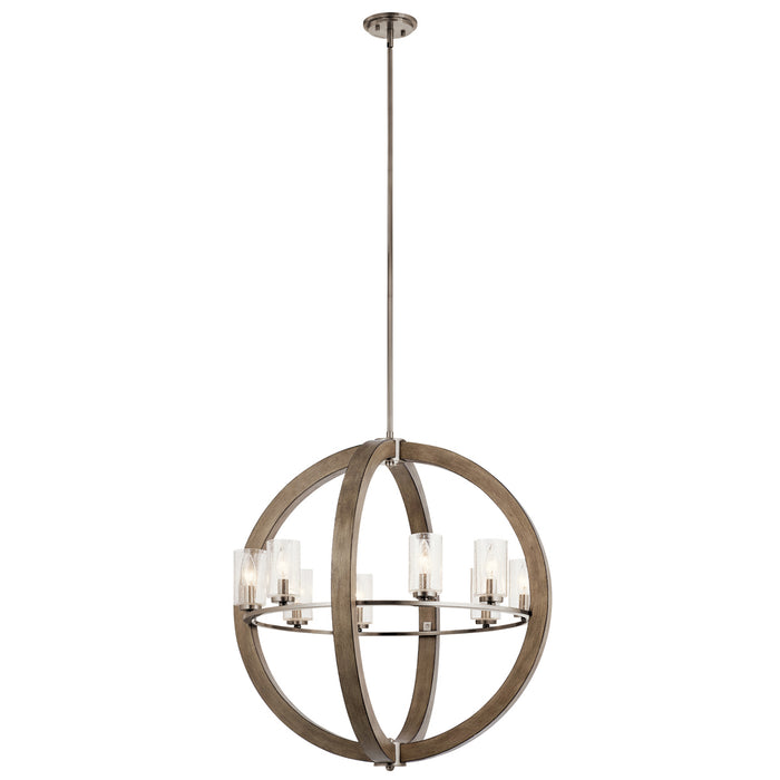 This Distinctive 8 Light Chandelier/ Pendant From The Grand Bank(Tm) Collection Creates A Bold Statement. The Rich, Auburn Stained Finish And Clear Seedy Glass Will Accent Any Space In Your Home.