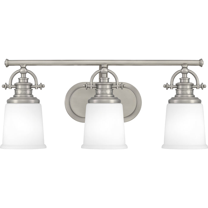 This opal etched glass fixture is an elegant nod to the past. The classic Americana design adds a nostalgic flair to your home. It will suit a variety of bathroom d�cors with great style.