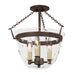 The Harris Small Semi Flush Classic Bell Lantern with Tiny Star Glass in Oil rubbed bronze with Clear Mouth Blown Glass is perfect for period/vintage and traditional spaces. It can be installed in Dry locations and comes with Candelabra-based bulb(s).